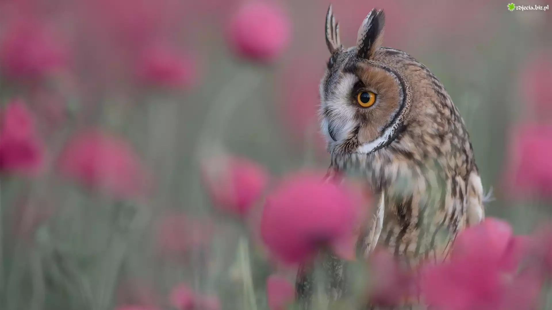 Zdjęcie Ptak, Sowa uszata, Rozmyte tło