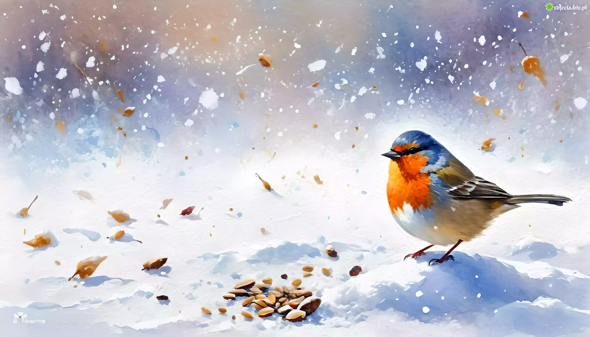 Zdjęcie Kolorowy, Ptak, Śnieg, Ziarna, Grafika