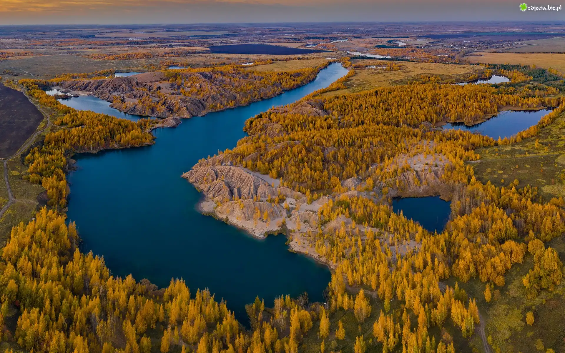 Zdjęcie Z lotu ptaka, Jeziora, Jesień, Lasy, Drzewa, Konduki, Obwód tulski, Rosja