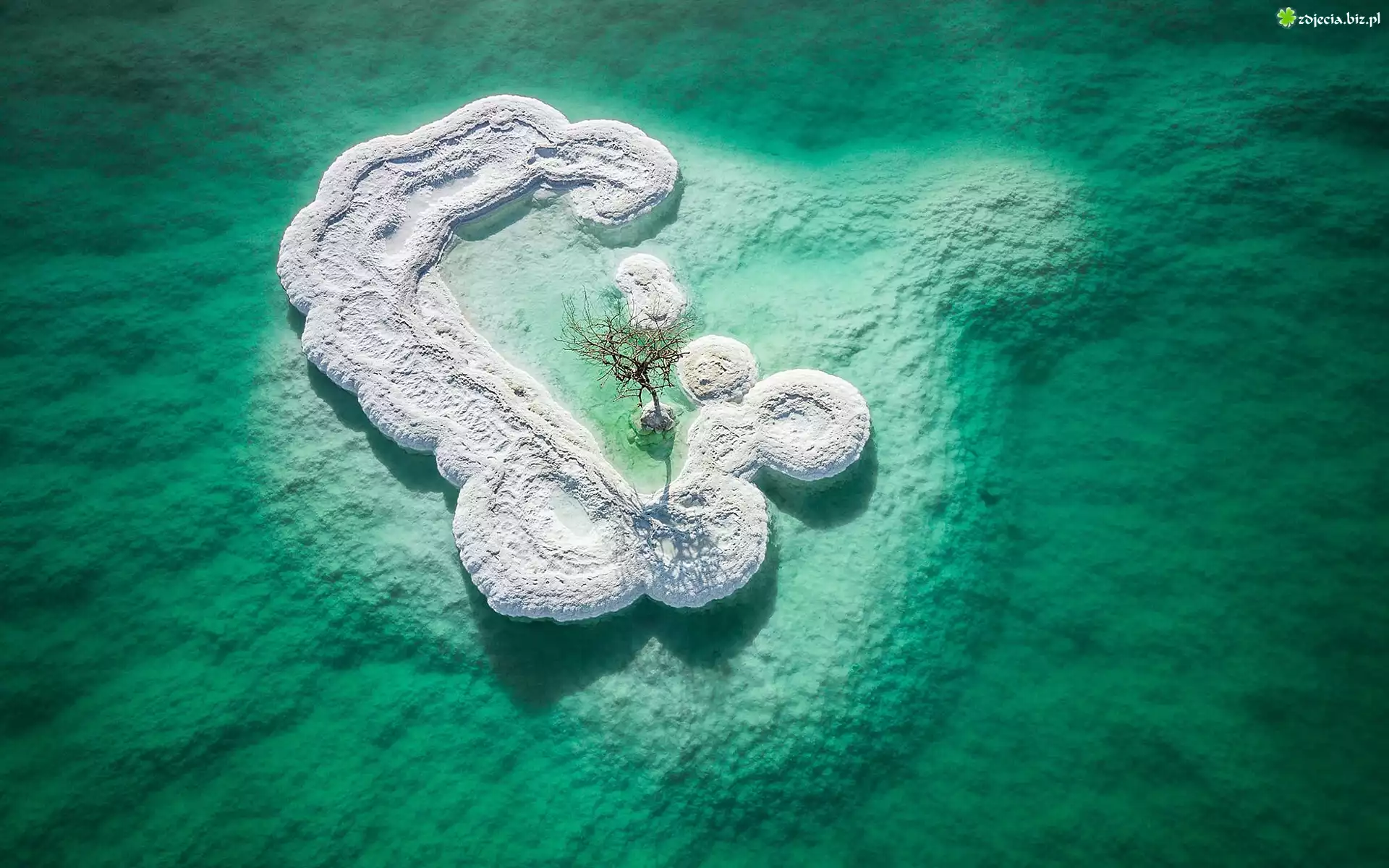 Zdjęcie, Izrael, Morze Martwe, Wyspa solna, Drzewo, Z lotu ptaka