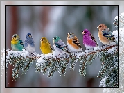 Zdjęcie Kolorowe, Ptaki, Gałąź, Grafika AI