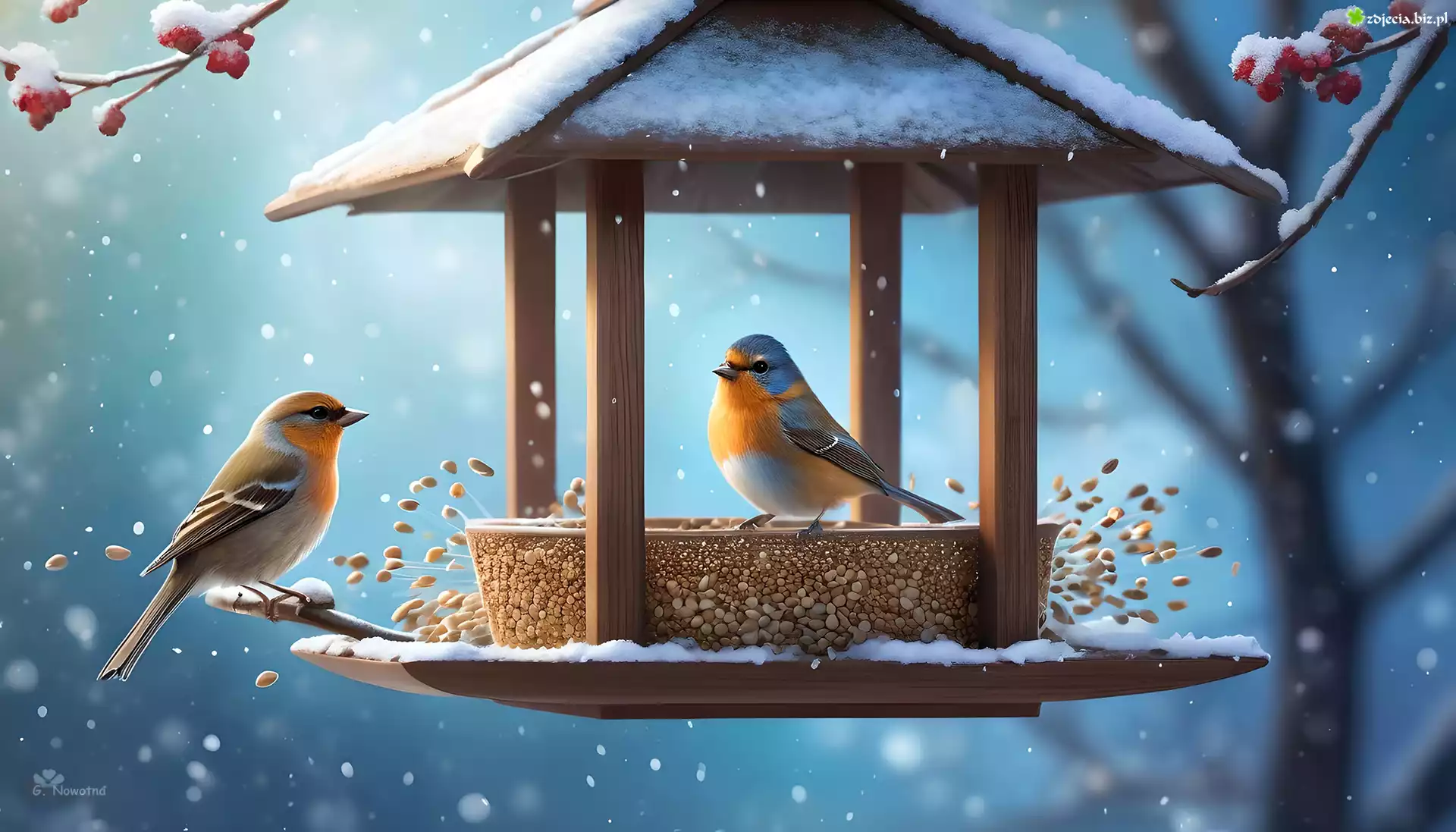 Zdjęcie Kolorowe, Ptaki, Karmnik, Zima, Grafika