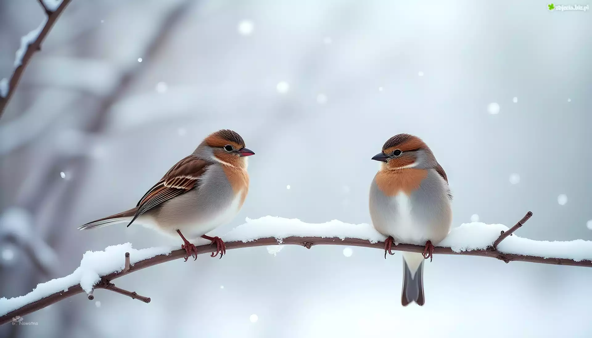 Zdjęcie Dwa, Ptaki, Ośnieżona, Gałązka, Grafika