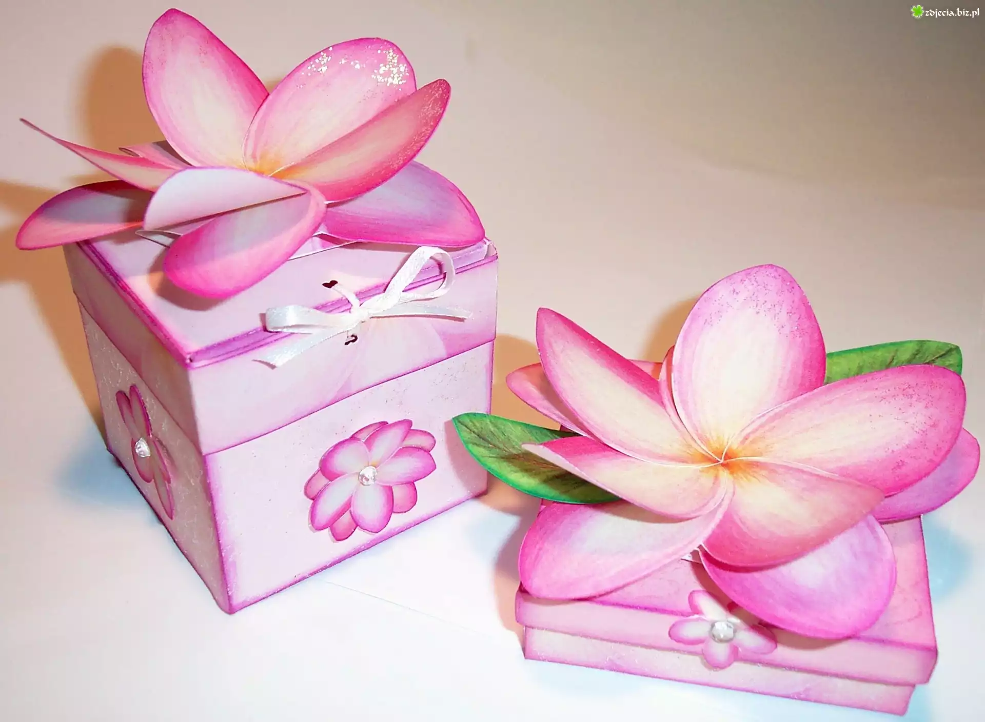 Zdjęcie Pudełka, Prezenty, Sztuczne, Kwiaty, Plumerii