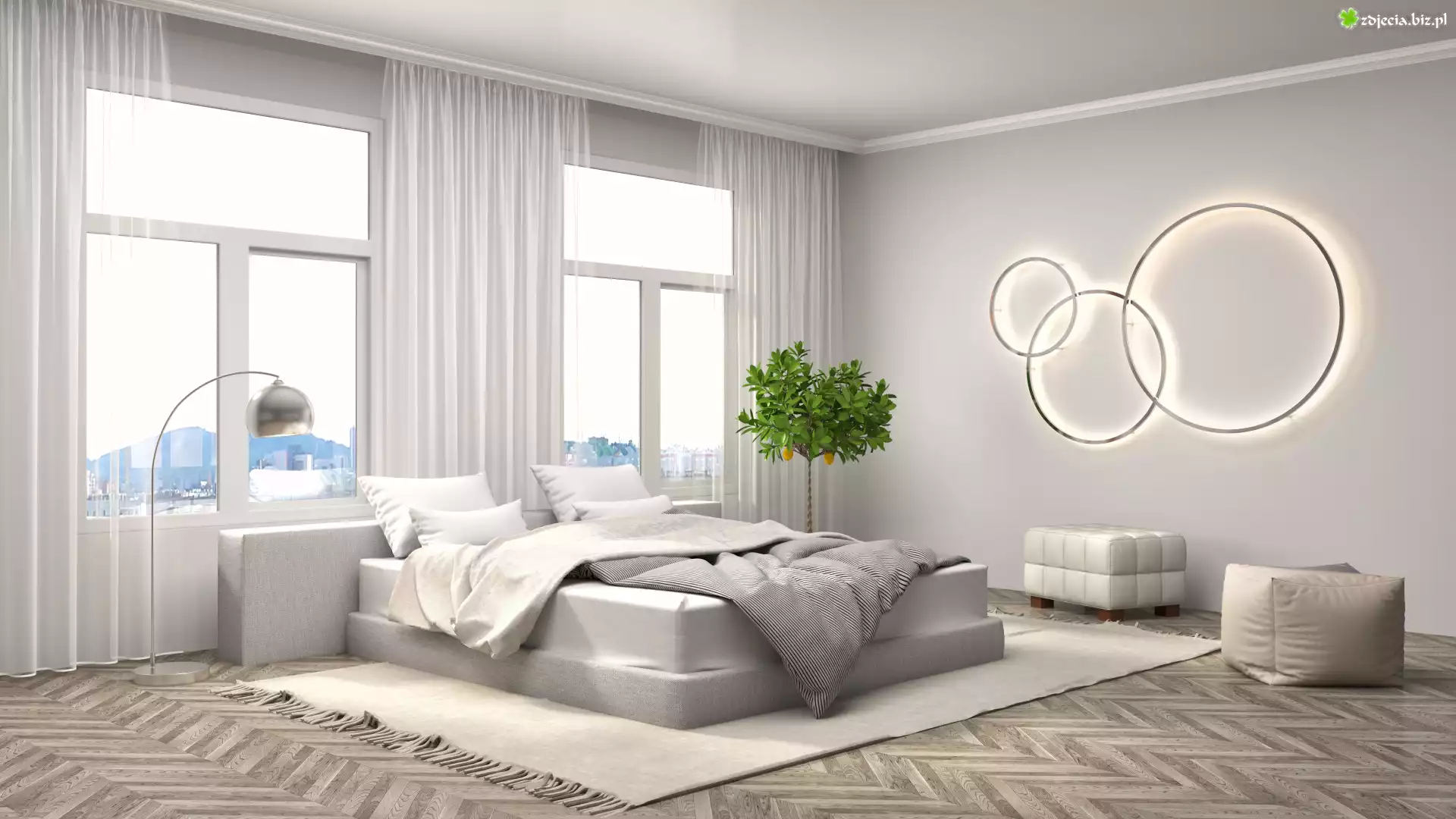 Zdjęcie Sypialnia, Pufy, Drzewko, Lampa, Dywan, Świetliste, Koła