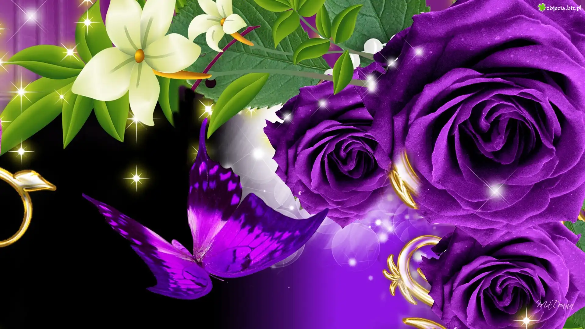 Zdjęcie Purpurowe, Róże, Motyl, Grafika
