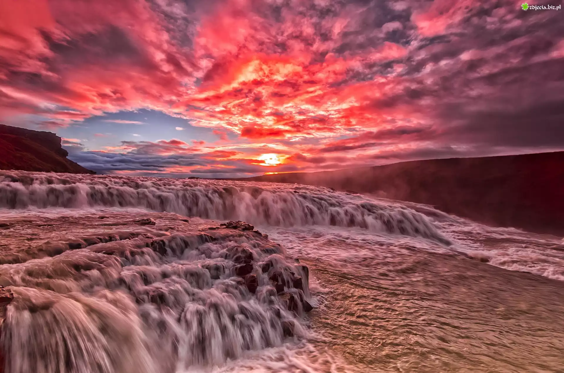 Zdjęcie Purpurowe, Niebo, Wzburzona, Rzeka, Kaskada