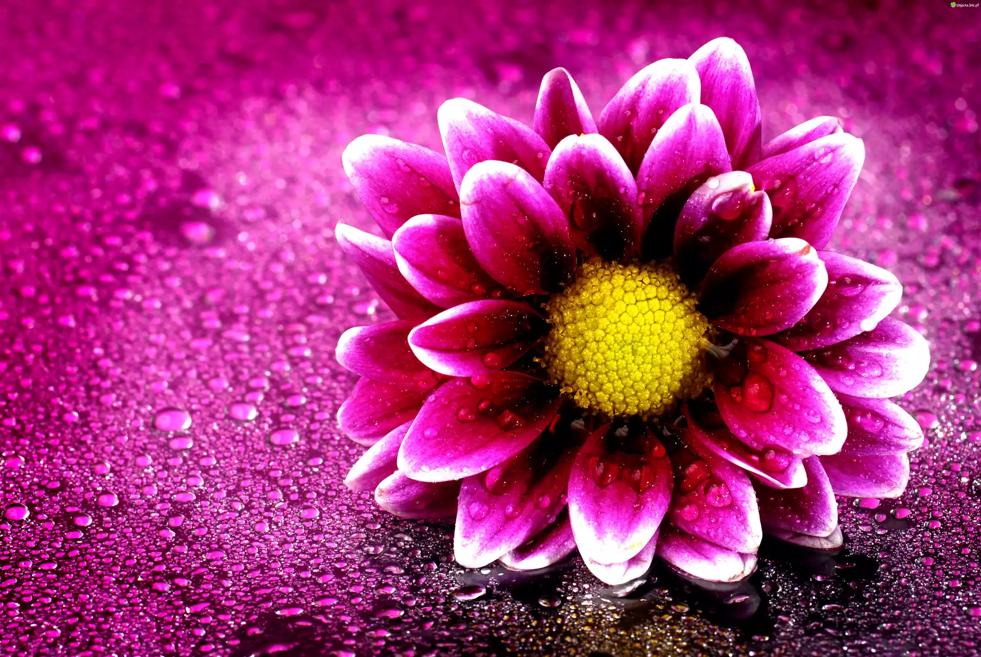 Zdjęcie Purpurowy, Kwiat, Krople Wody, Makro