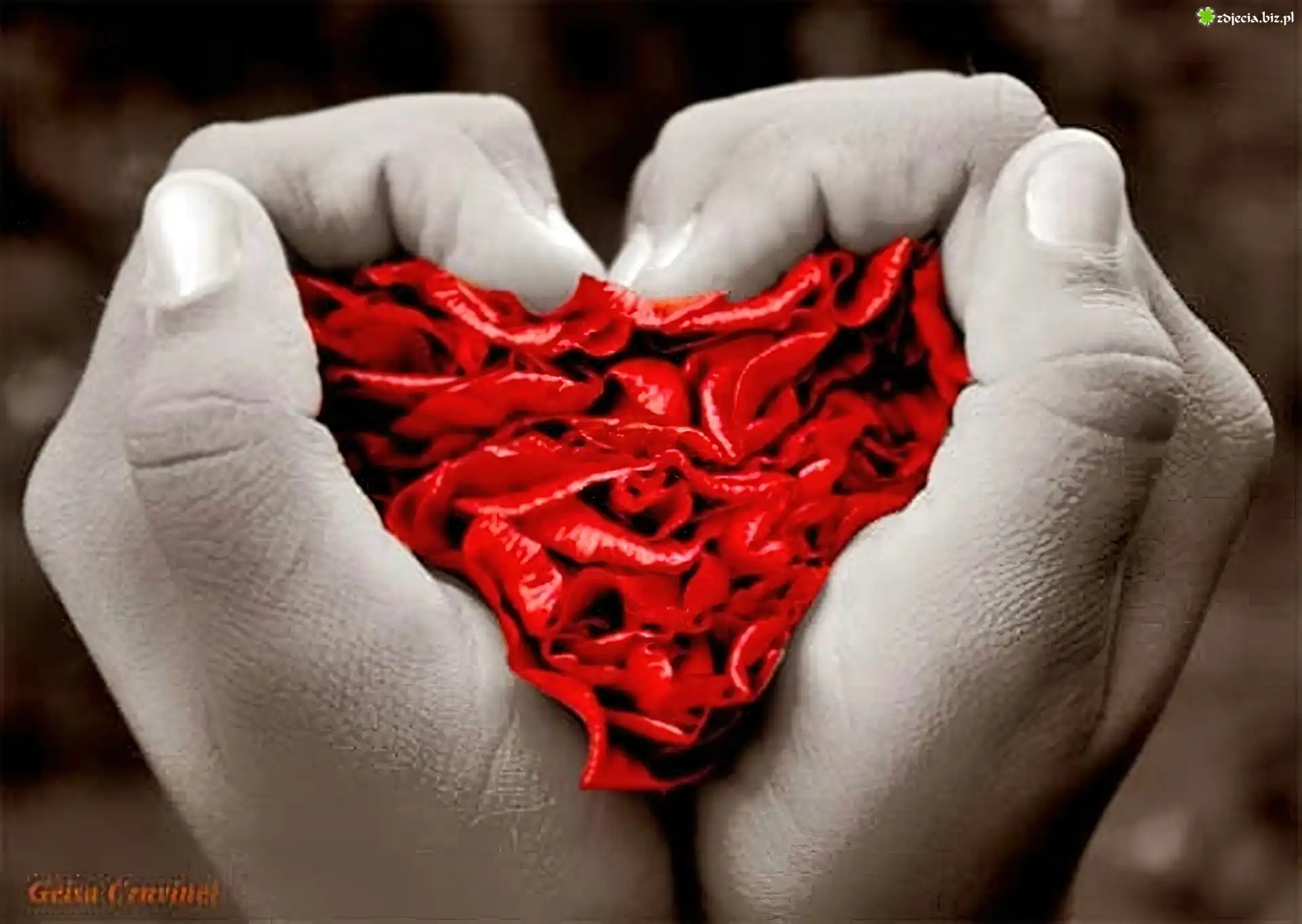 Zdjęcie Ręce, Płatki, Kształt, Serca