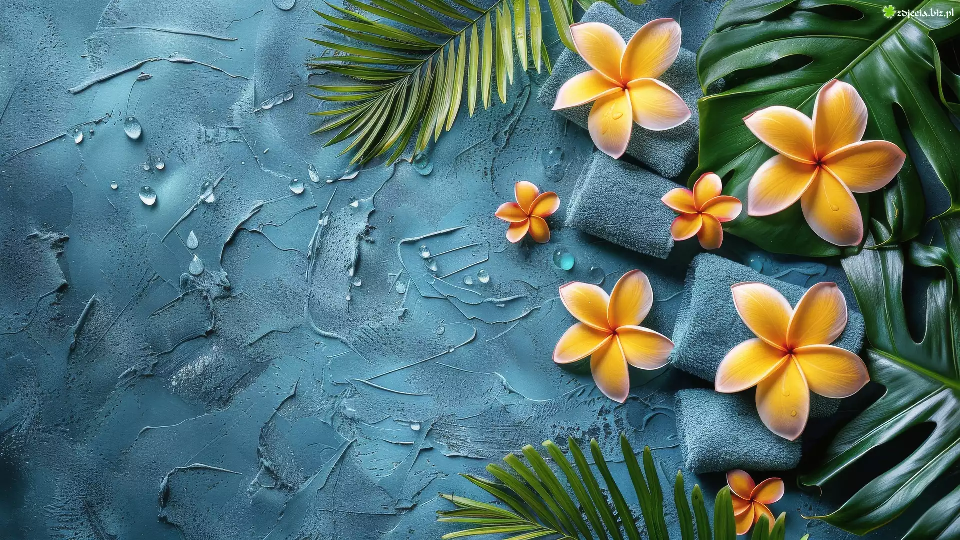 Zdjęcie Kwiat, Plumeria, Liście, Ręczniki