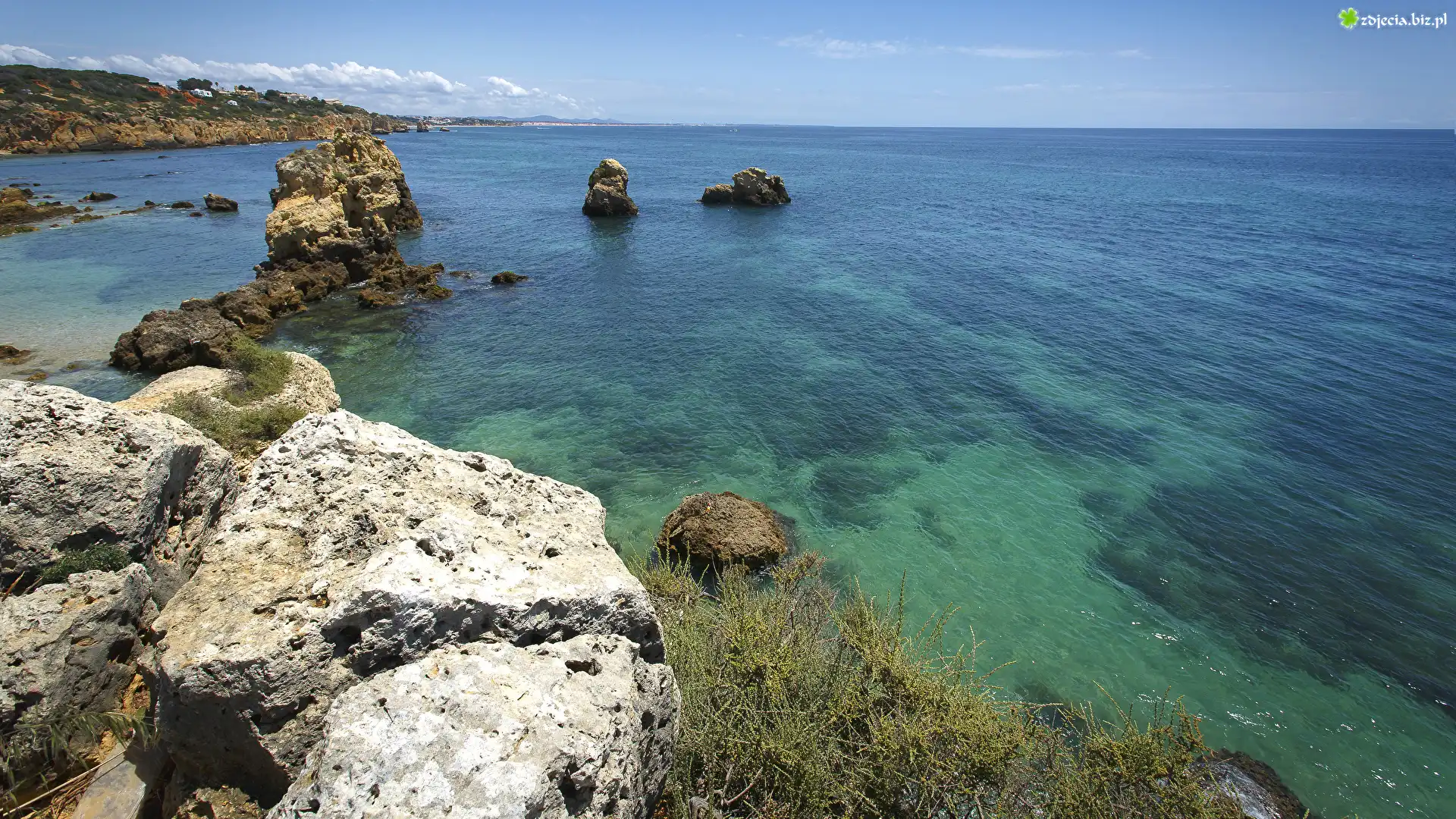 Zdjęcie Portugalia, Region Algarve, Wybrzeże, Morze, Skały, Roślinność