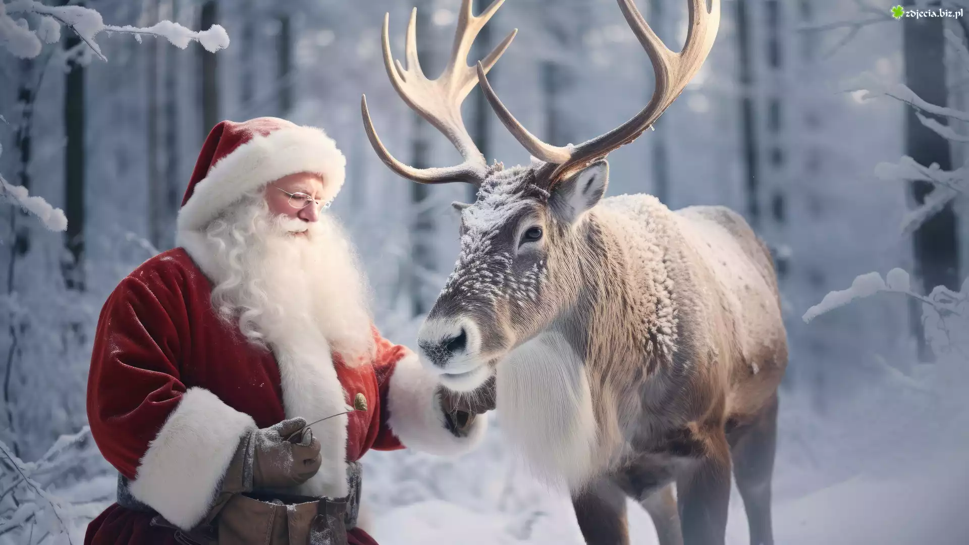 Zdjęcie Mikołaj, Renifer, Zima, Śnieg, Las