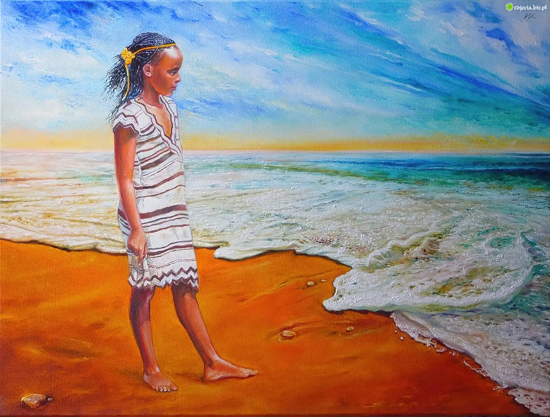 Zdjęcie Reprodukcje, Obrazów, Włodzimierz Kukliński, Dziewczynka, Plaża