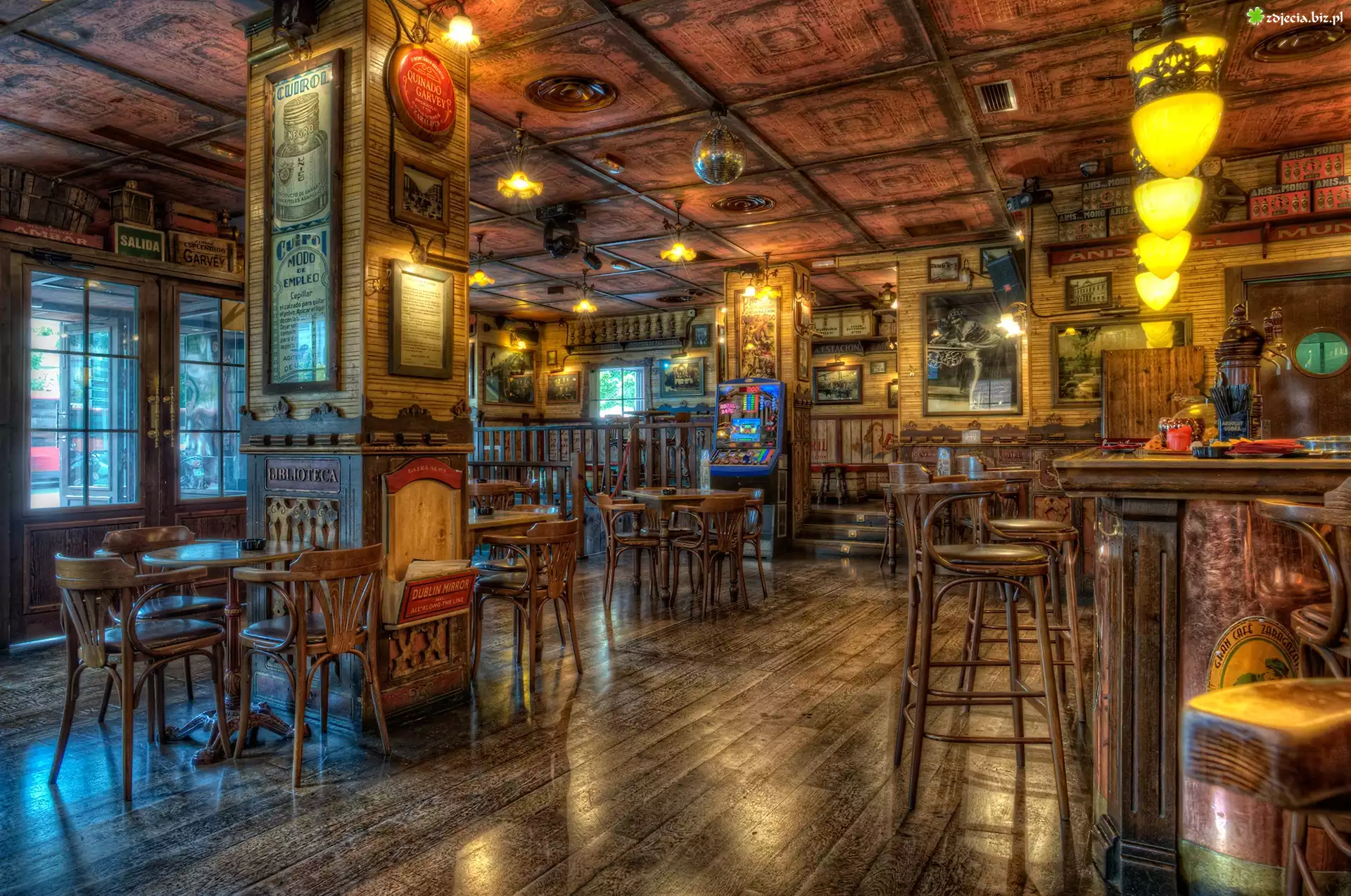 Zdjęcie, Rerstauracja, Stoliki, Krzesła, Bar
