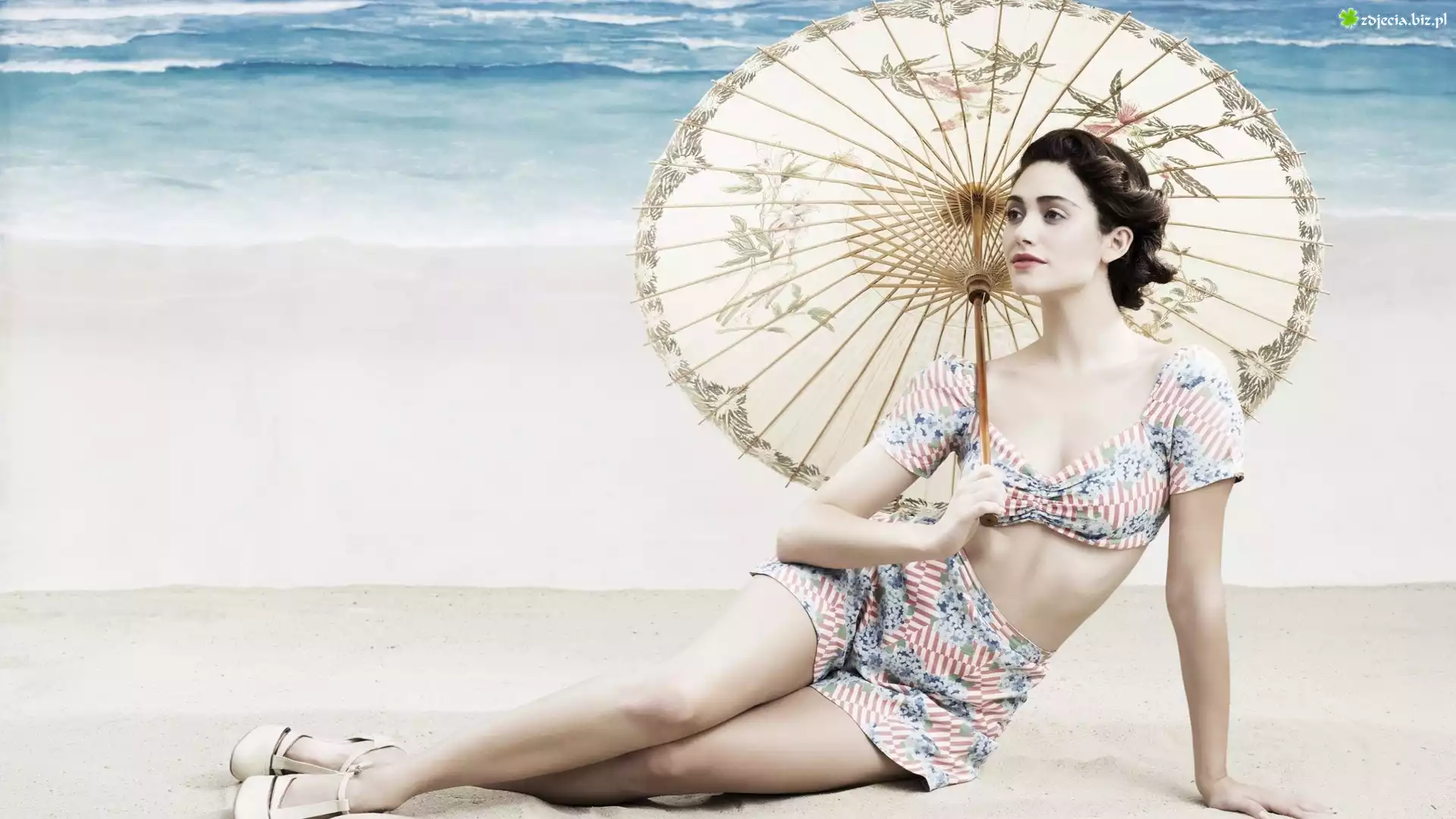 Zdjęcie Retro, Kobieta, Parasol, Plaża