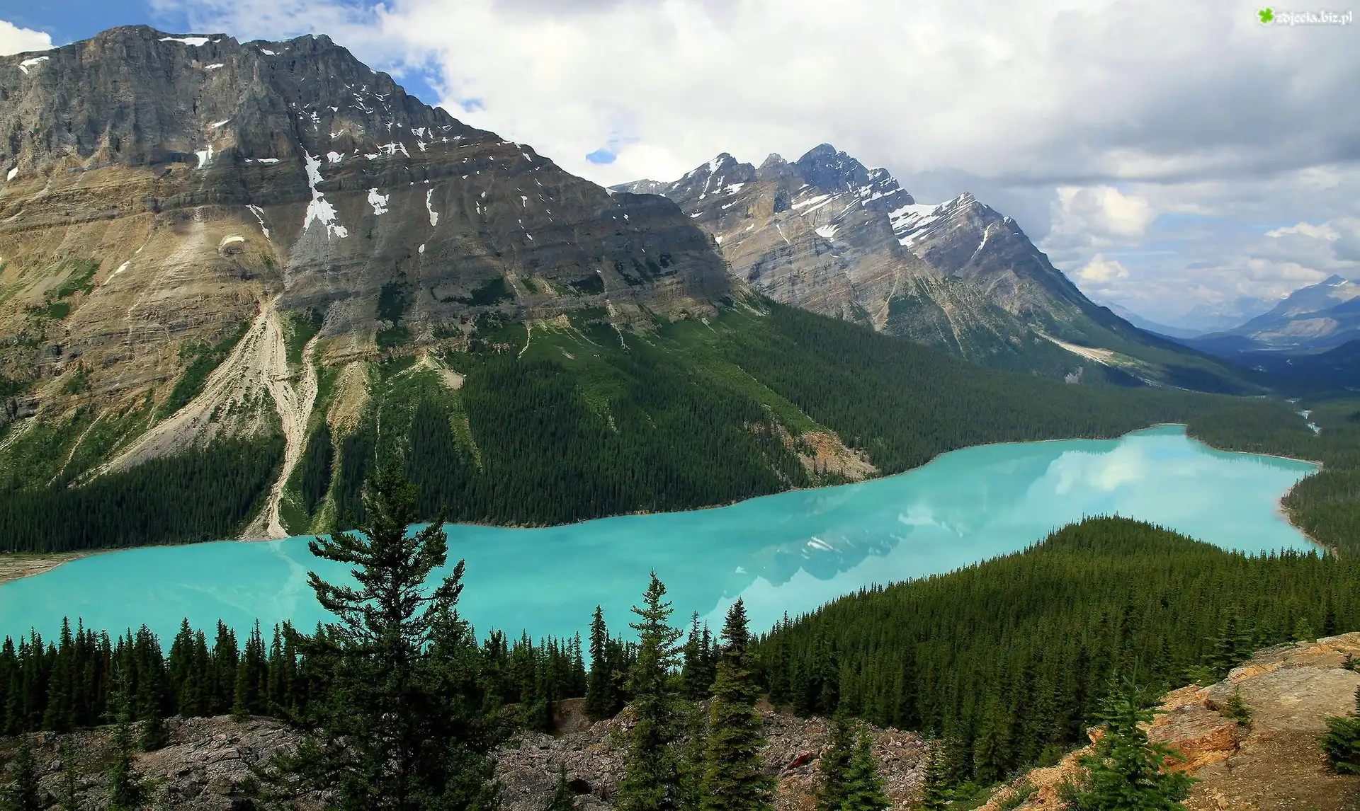 Zdjęcie, Góry, Canadian Rockies, Jezioro Peyto Lake, Drzewa, Park Narodowy Banff, Kanada