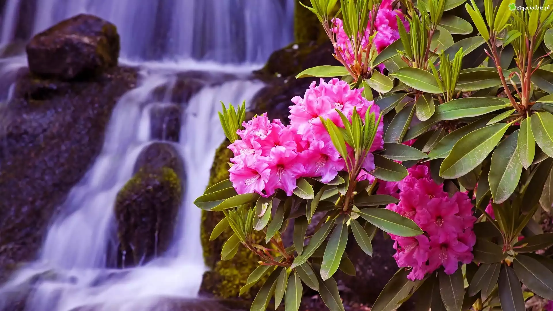 Zdjęcie Kwiaty, Rododendrony, Wodospad