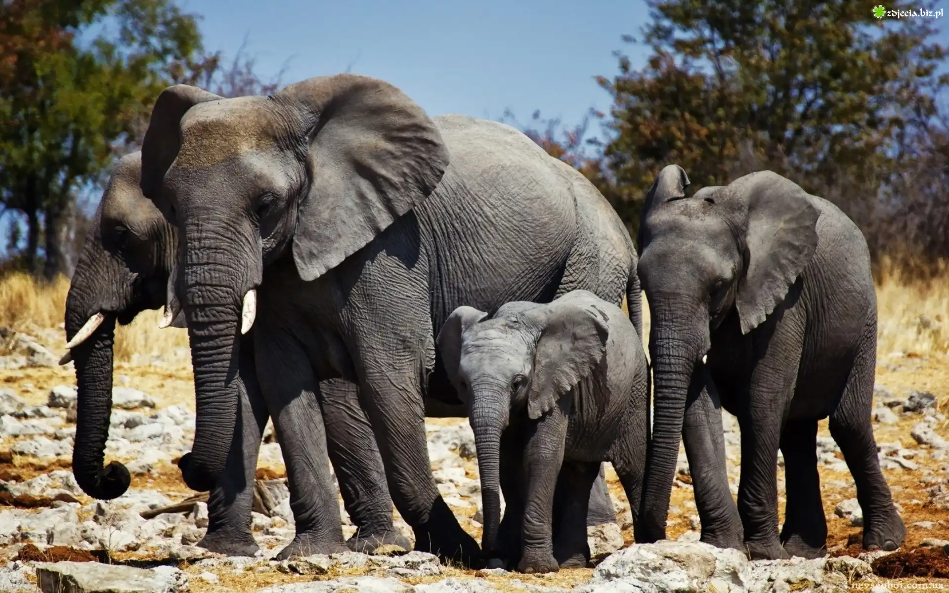 Zdjęcie Rodzina, Słoni, Sawanna, Afryka