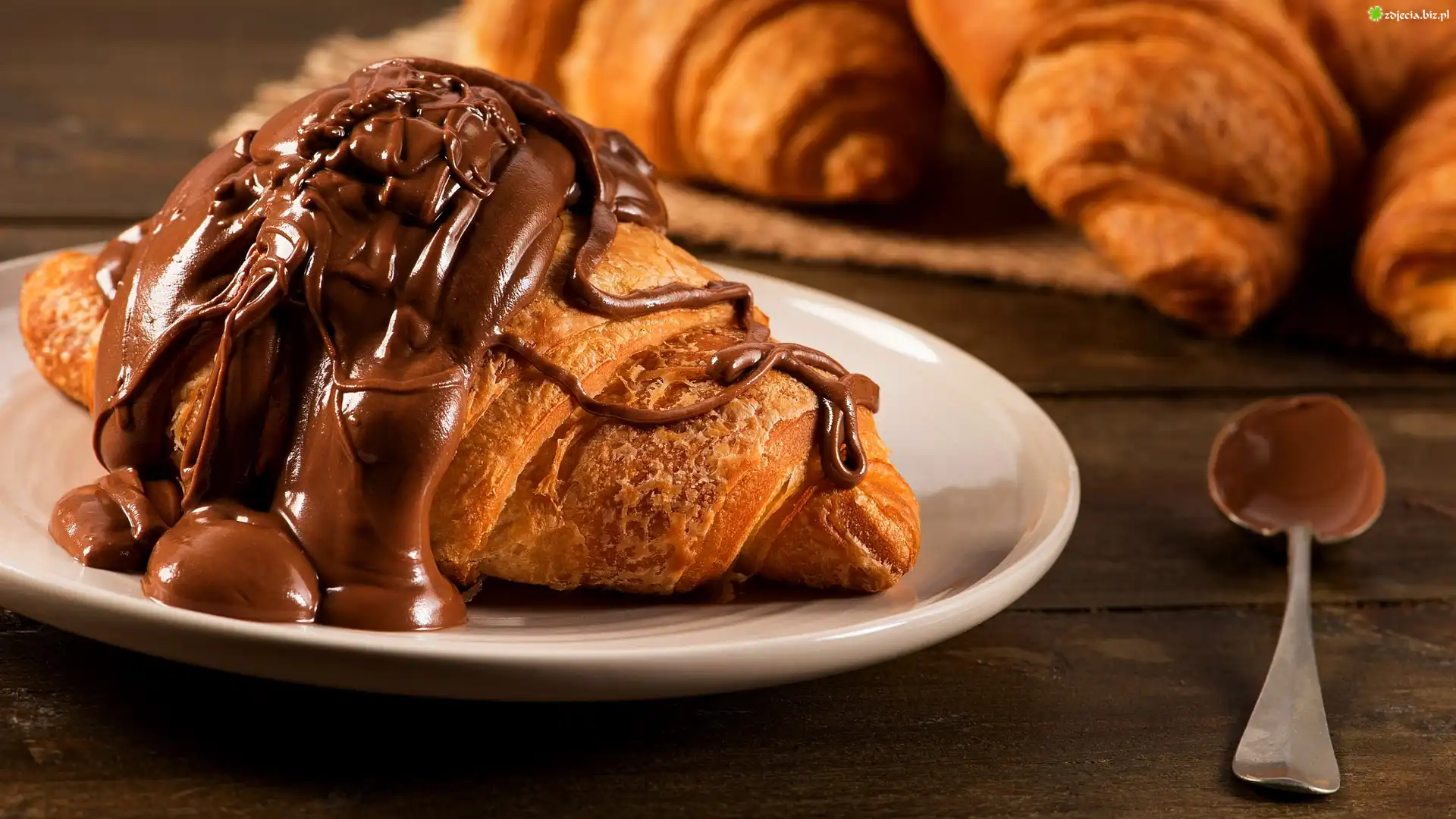 Zdjęcie Rogalik, Czekolada, Nutella, Talerz