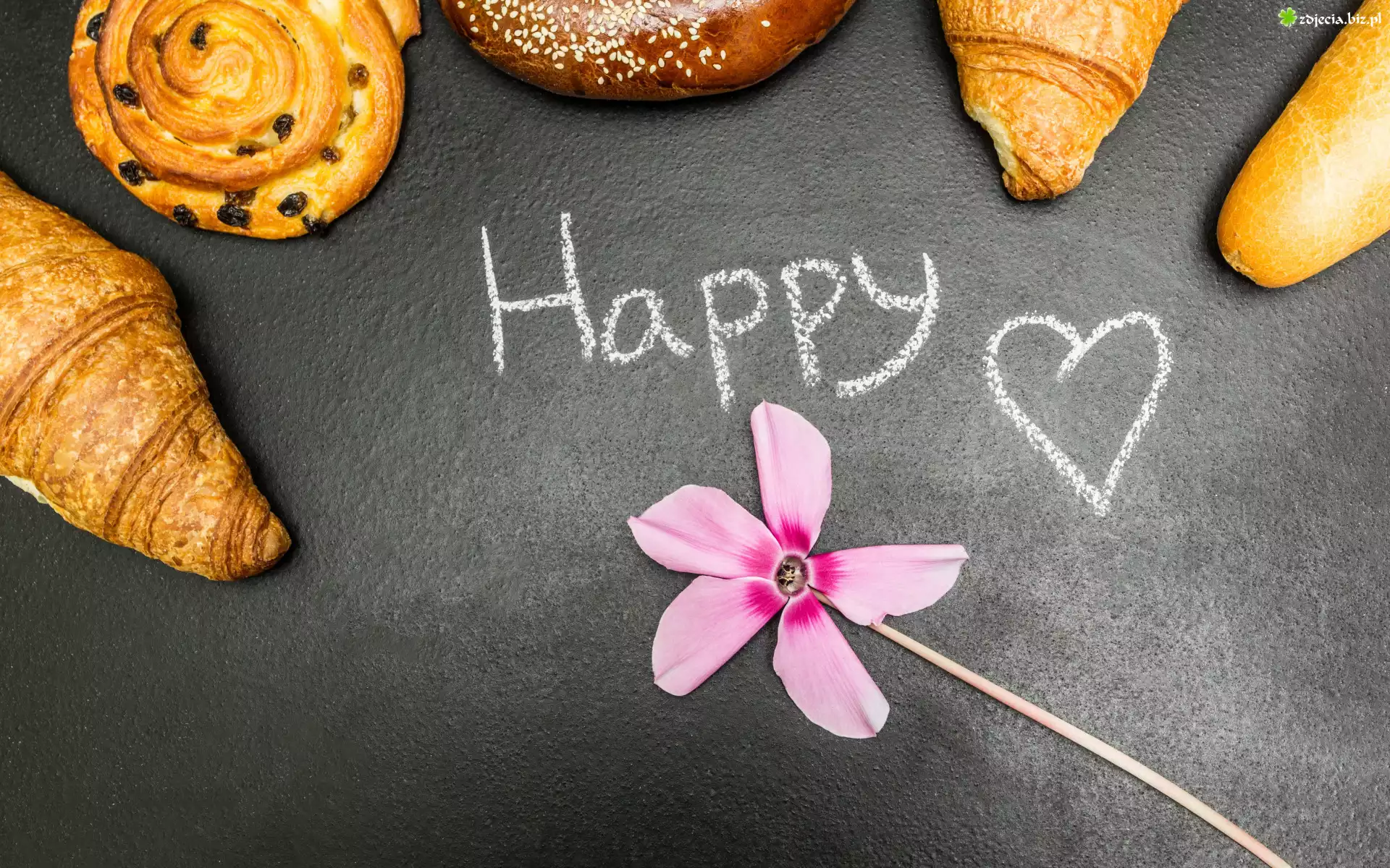Zdjęcie Kwiat, Rogaliki, Napis, Happy, Ciastka