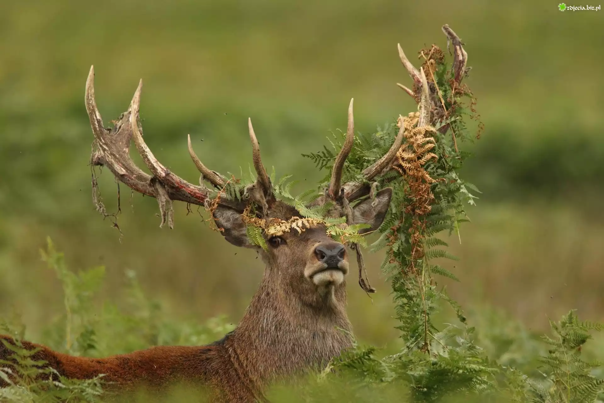 Zdjęcie, Jeleń, Rogi, Rośliny