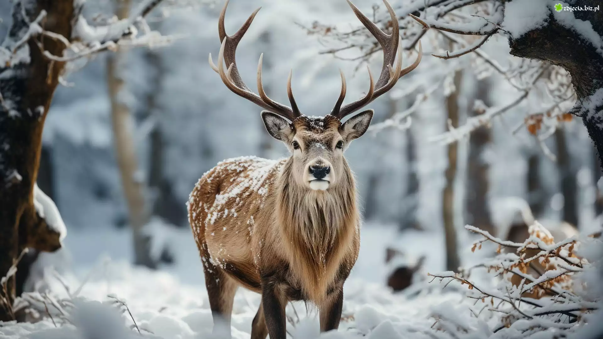 Zdjęcie Jeleń, Rogi, Zima, Śnieg, Las