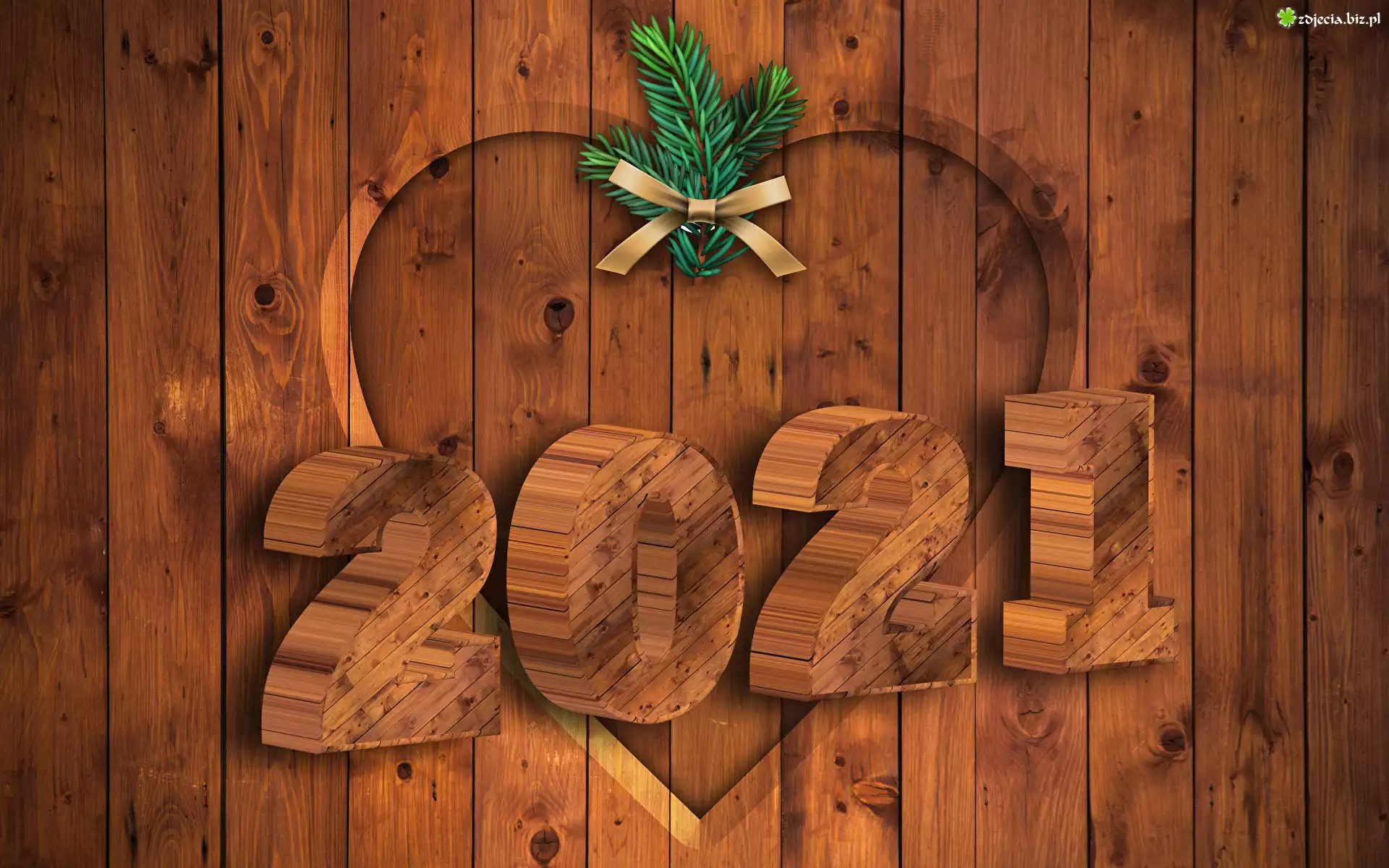 Zdjęcie Nowy Rok, Data, 2021, Gałązki, Serce, Tło, Drewniane