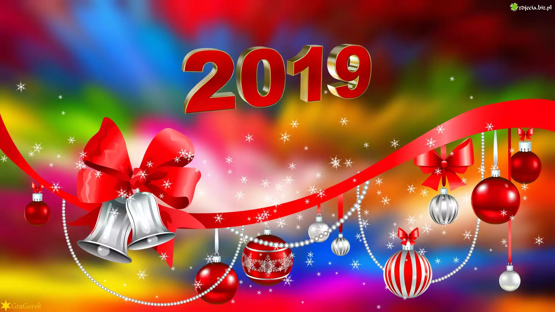 Zdjęcie, Nowy Rok, 2019, Dzwonki, Bombki, Szarfa, Grafika