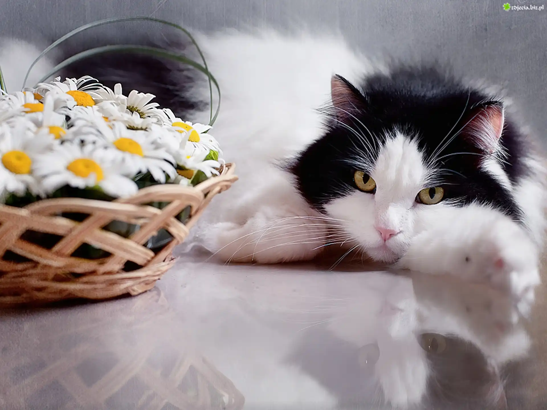 Zdjęcie Romantyczny, Kotek, Kwiaty, Koszyk