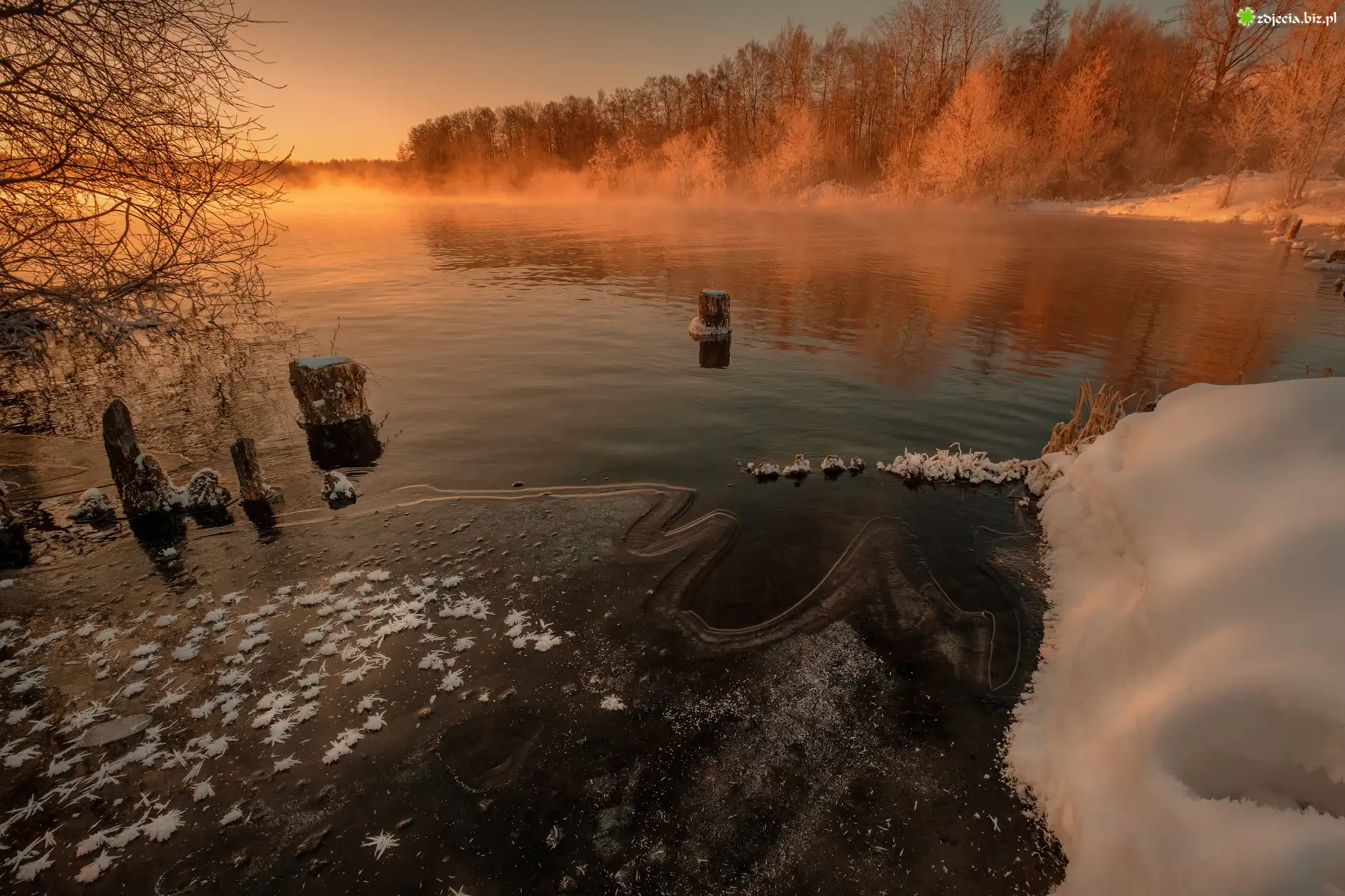 Zdjęcie Zima, Jezioro Białe, Mgła, Drzewa, Kołki, Szatura, Obwód moskiewski, Rosja