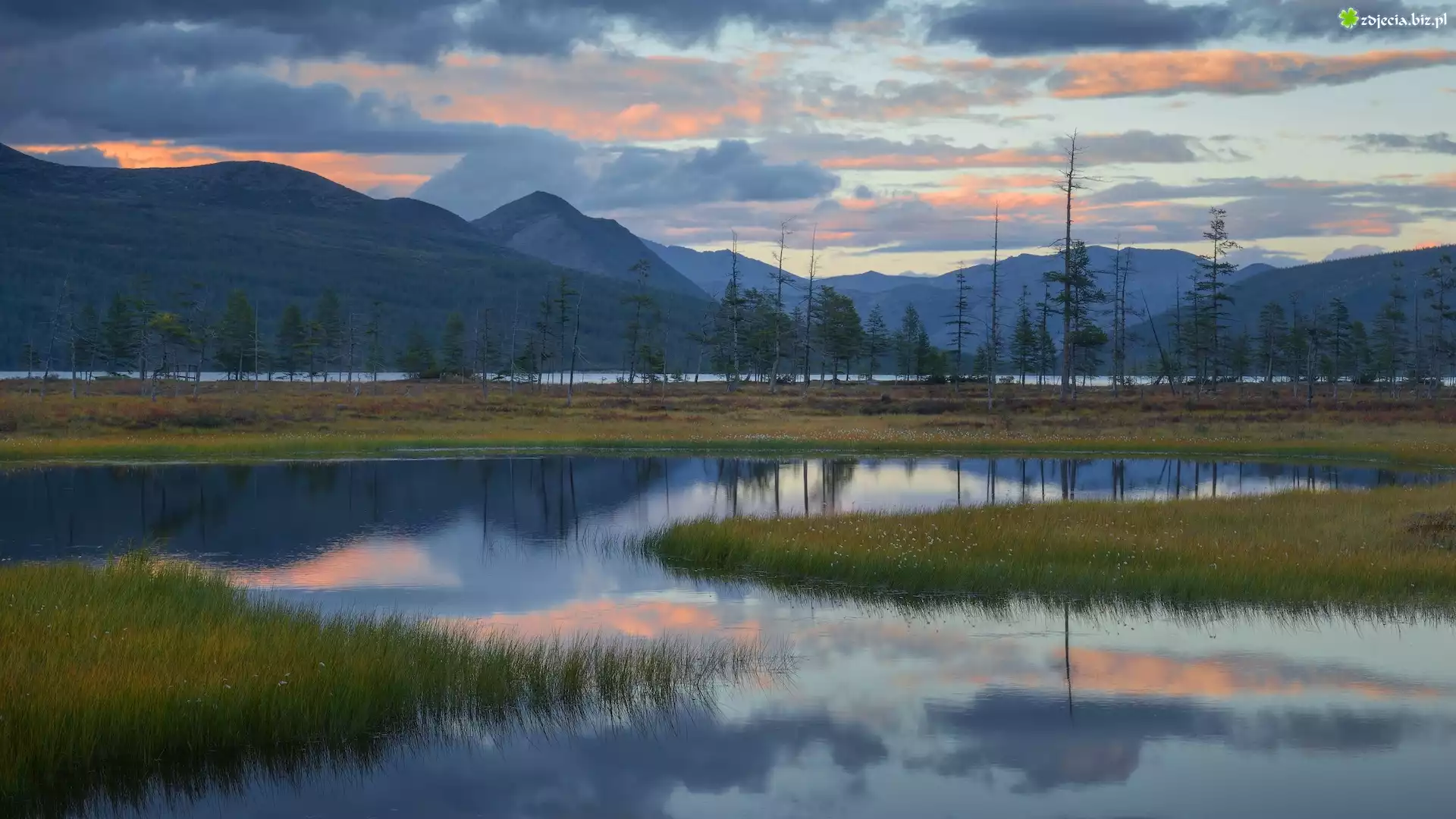 Zdjęcie, Rosja, Kołyma, Góry Kołymskie, Jezioro, Jack London, Drzewa, Chmury