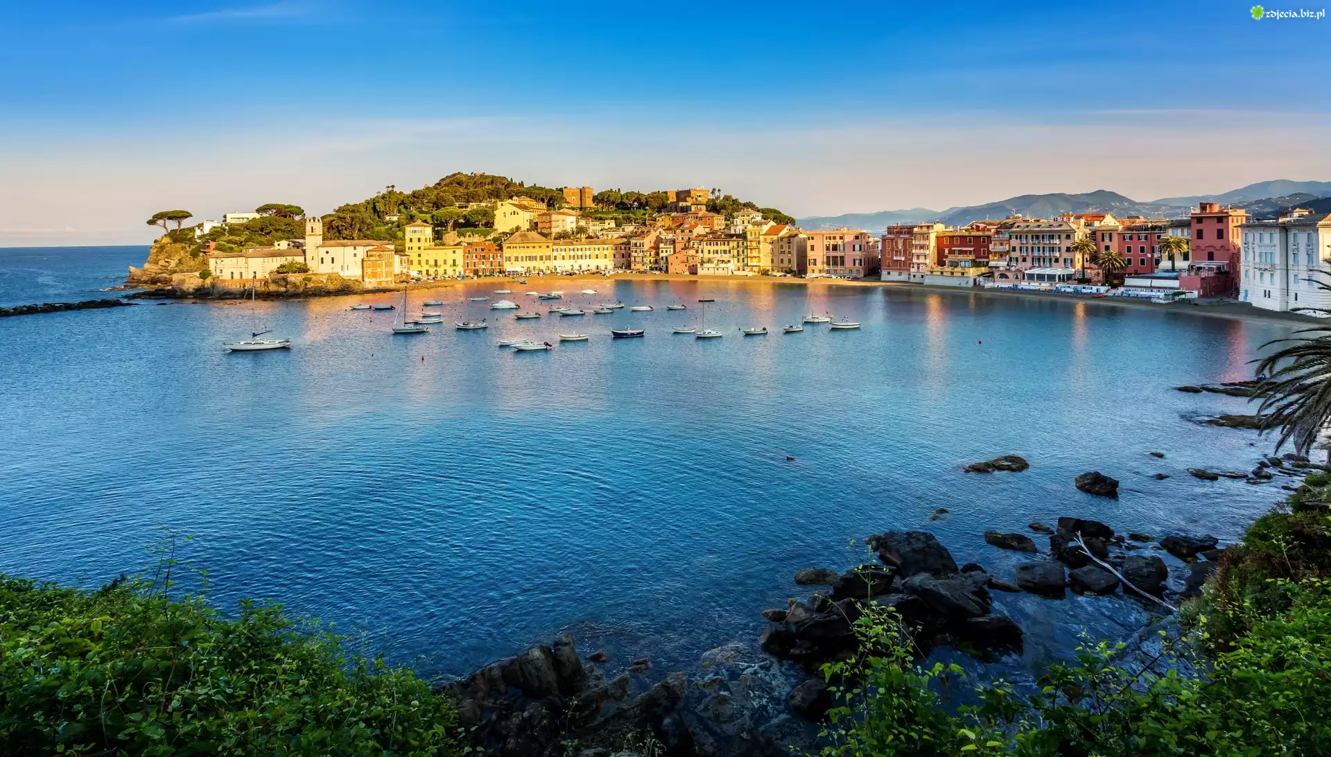 Zdjęcie Wybrzeże, Wzgórze, Góry, Zabudowa miejska, Statki, Ocean, Kamienie, Roślinność