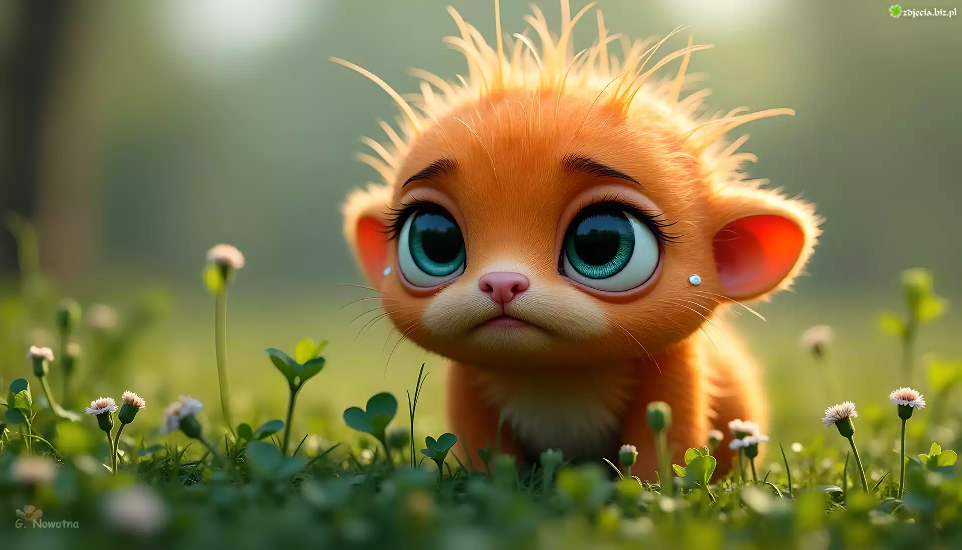 Zdjęcie Pomarańczowy, Smutny, Stworek, Rośliny, Kwiaty, Grafika