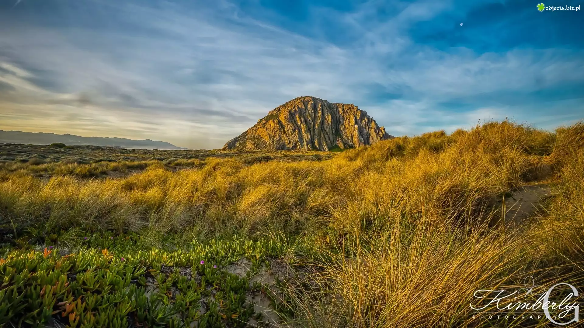 Zdjęcie Góra, Morro Rock, Skała, Żółta, Trawa, Rośliny, Księżyc, Kalifornia, Stany Zjednoczone |