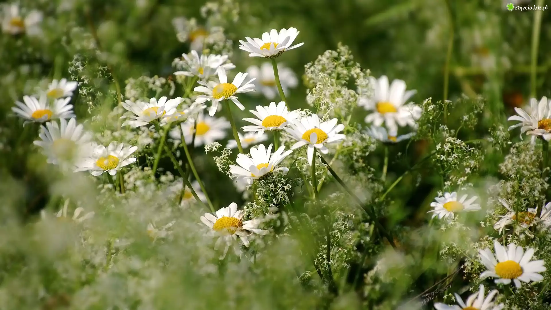 Zdjęcie Kwiaty, Stokrotki, Trawa, Rośliny