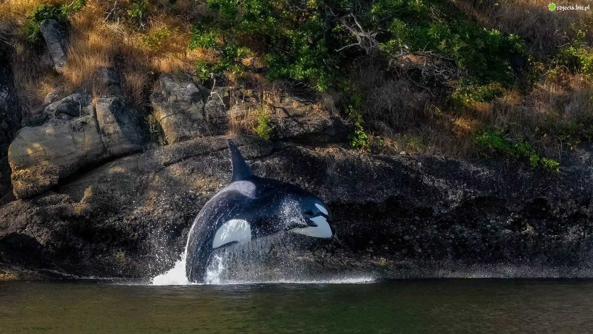 Zdjęcie Orka, Morze, Skały, Rośliny