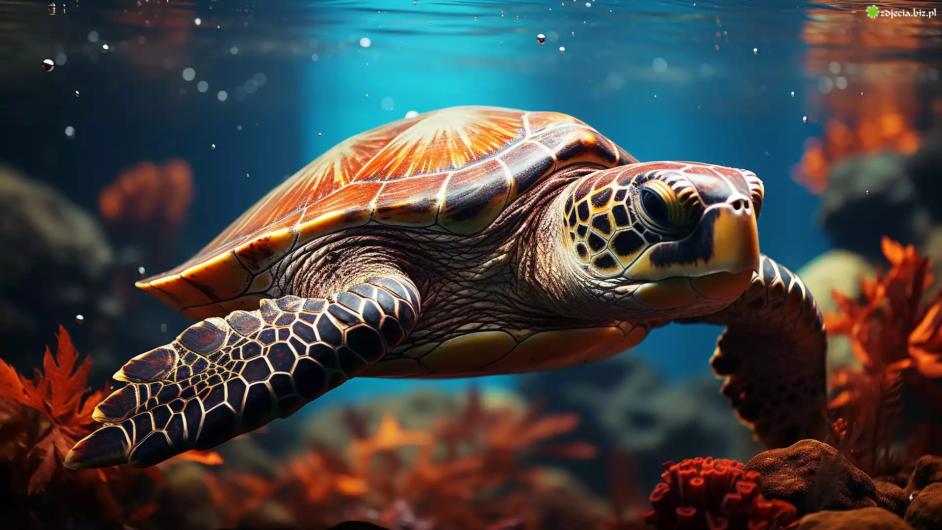 Zdjęcie, Żółw morski, Morze, Rośliny