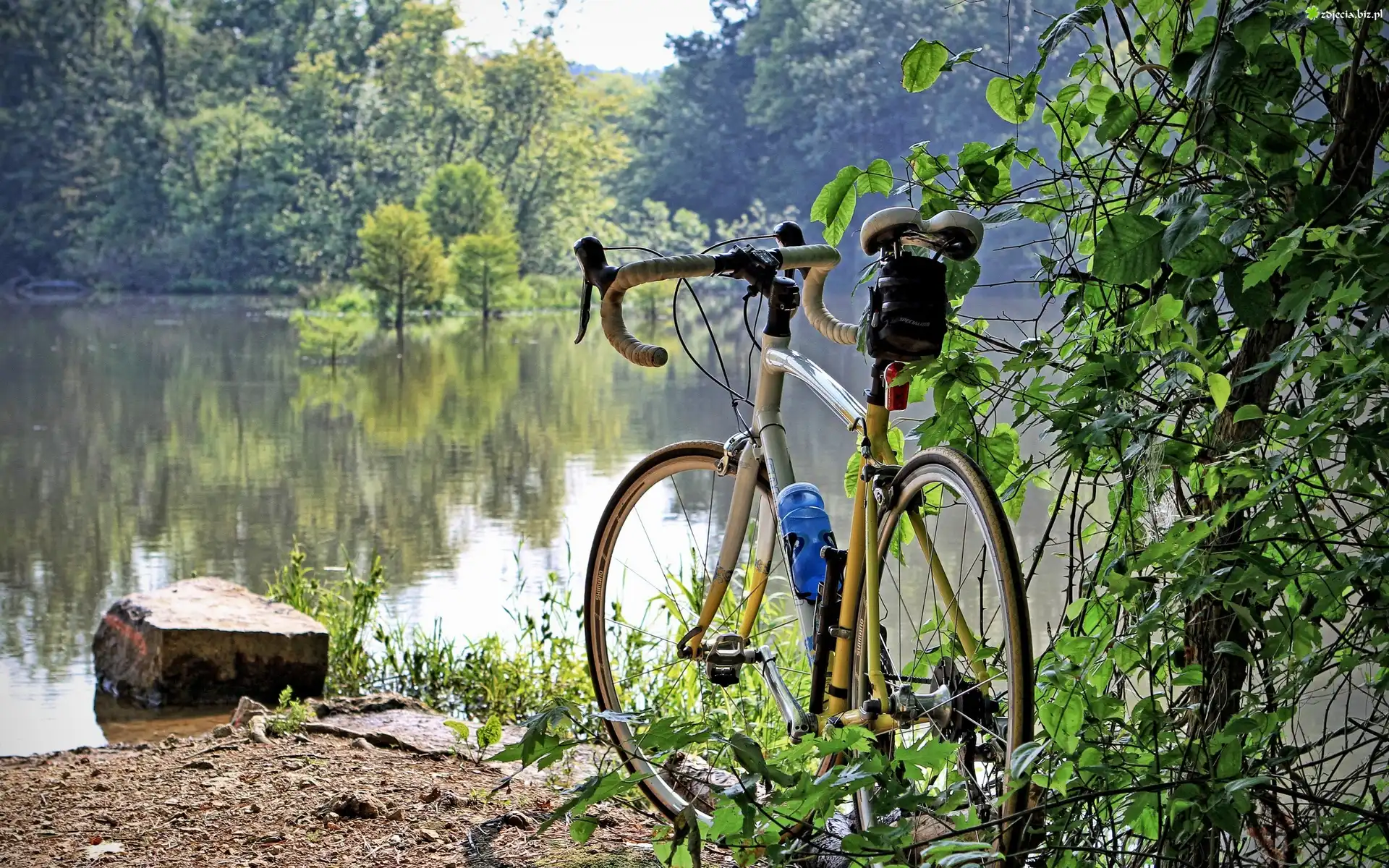 Zdjęcie Rower, Brzeg, Jeziora, Drzewa, Lasy