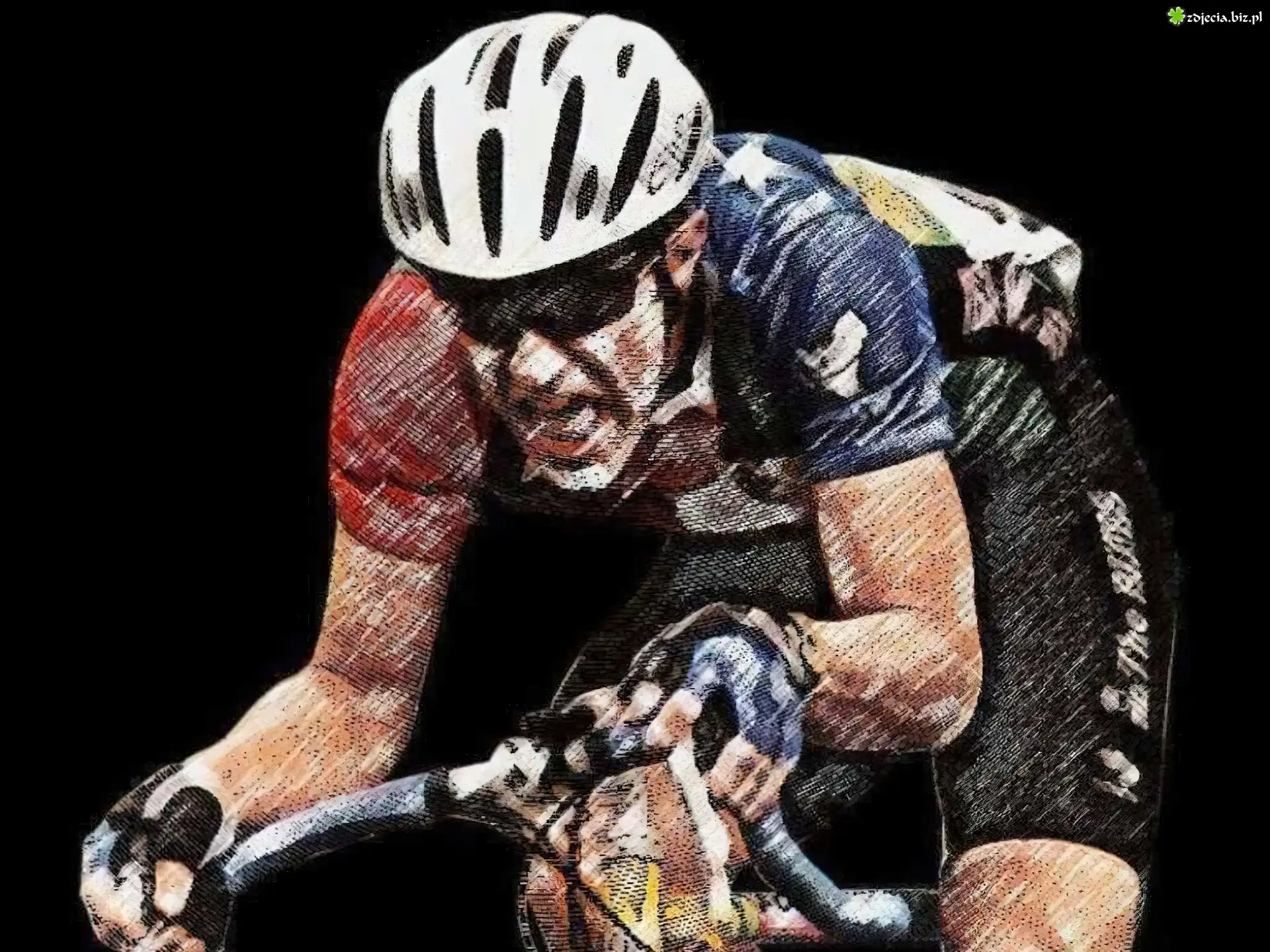 Zdjęcie, Rower,kolarz,kask, kierownica