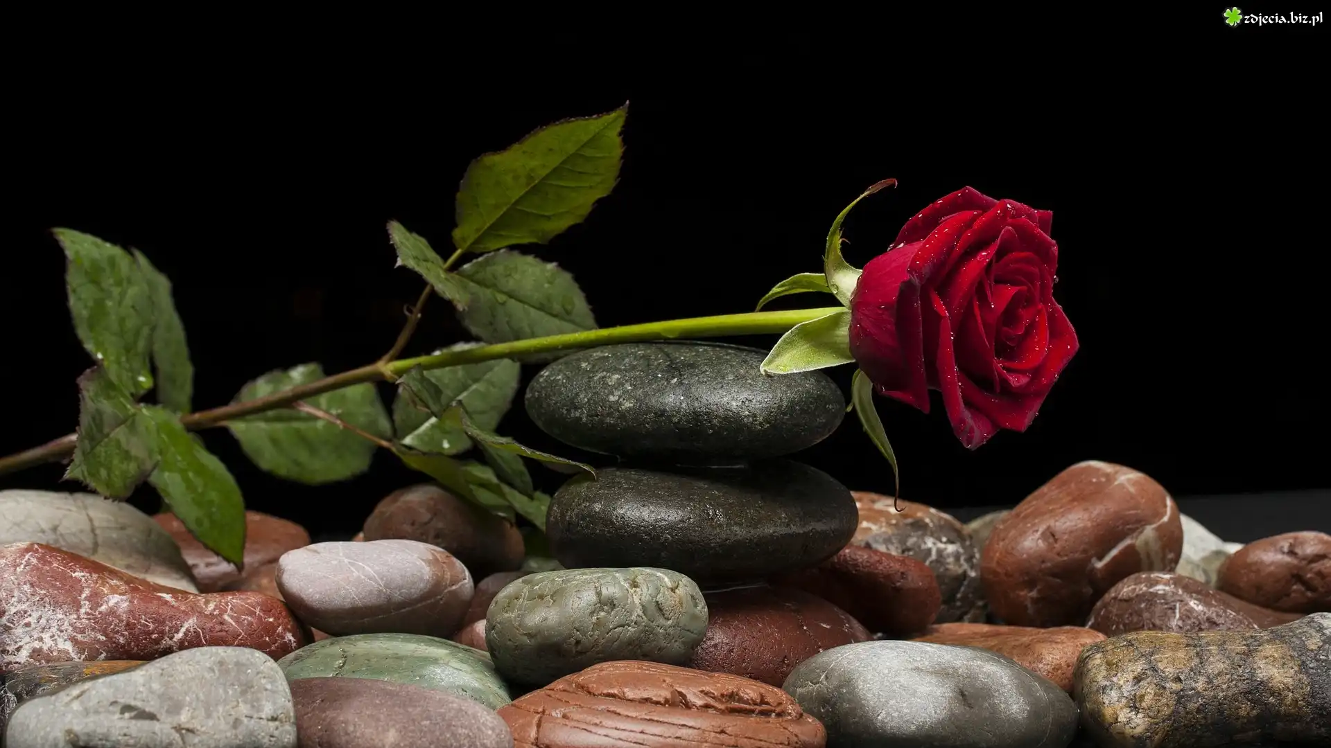 Zdjęcie Róża, Czerwona, Kamienie, Ciemne, Tło