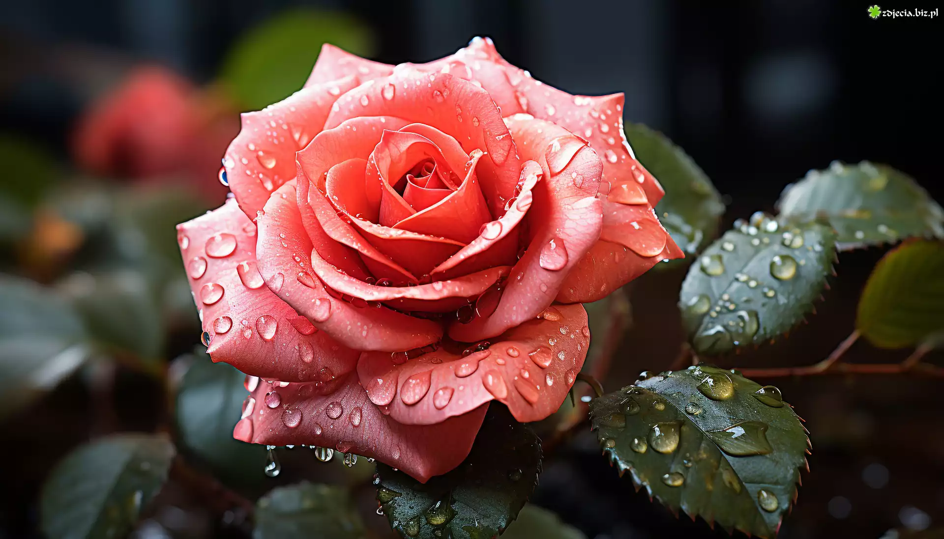Zdjęcie Kwiat, Róża, Różowa, Liście, Krople