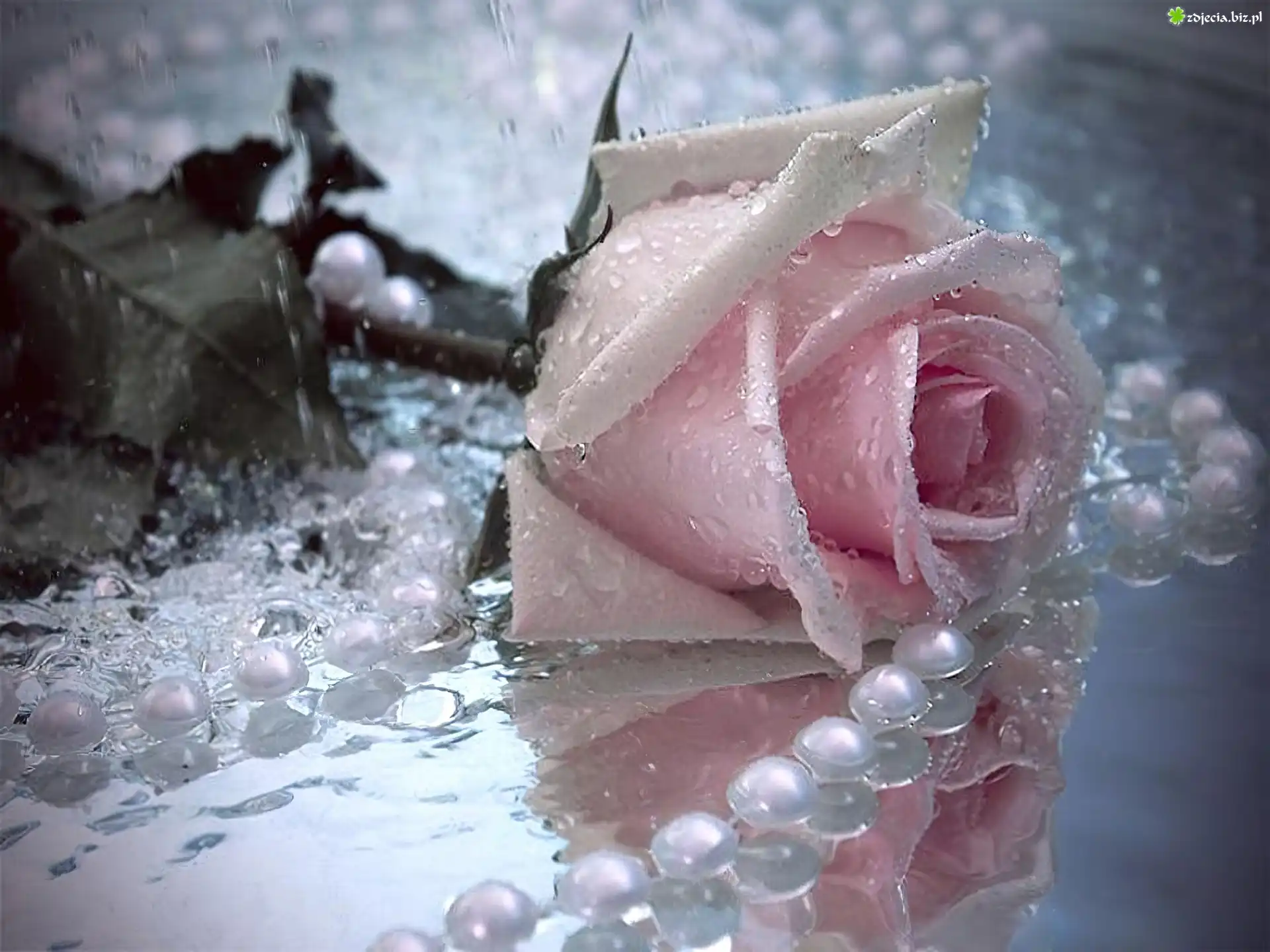 Zdjęcie Różowa, Róża, Perły