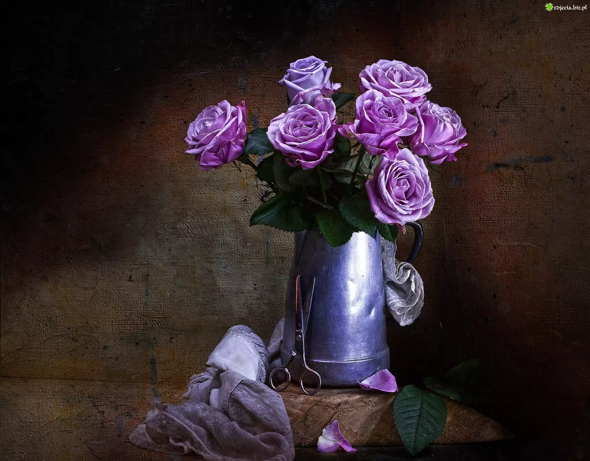 Zdjęcie, Róże, Kompozycja, Nożyczki, Chustka, Cynowy, Puchar