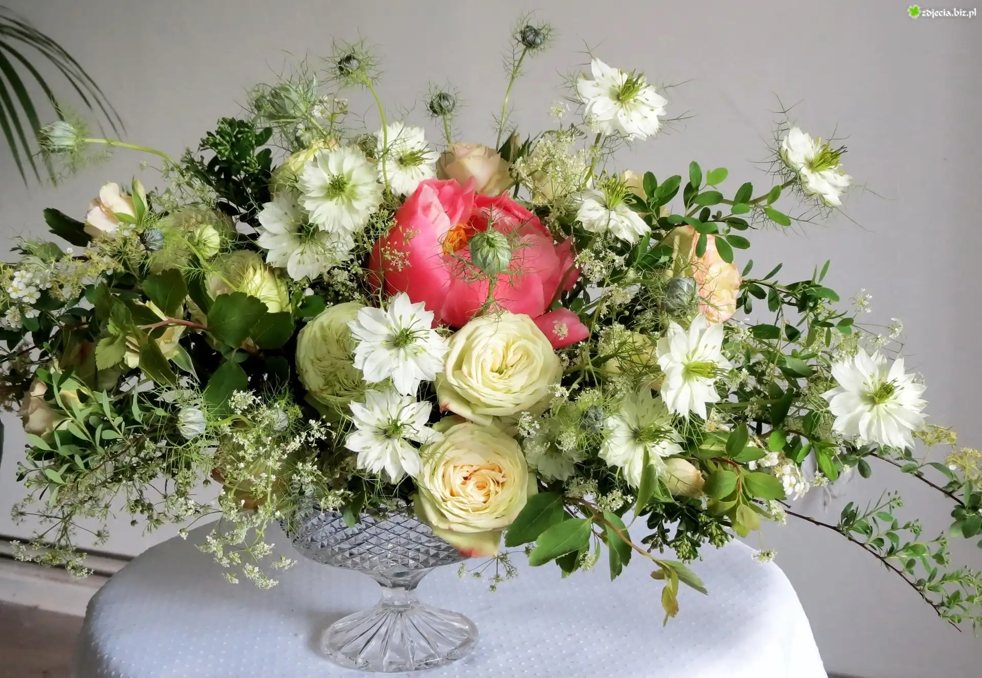 Zdjęcie, Róże, Piwonia, Białe Kwiaty, Bukiet