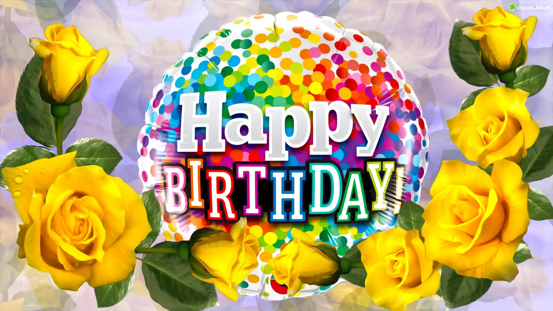 Zdjęcie Kwiaty, Róże, Balon, Napis, Życzenia, Urodziny, Grafika