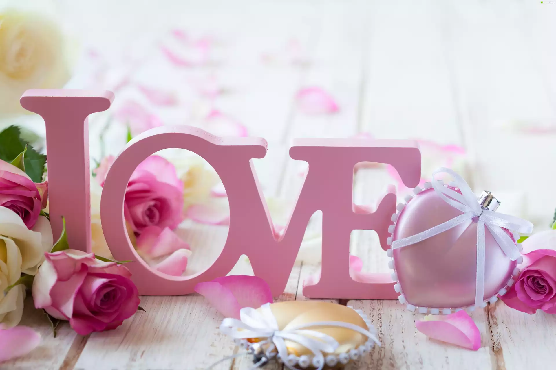 Zdjęcie Róże, Kwiaty, Napis, Love, Serce