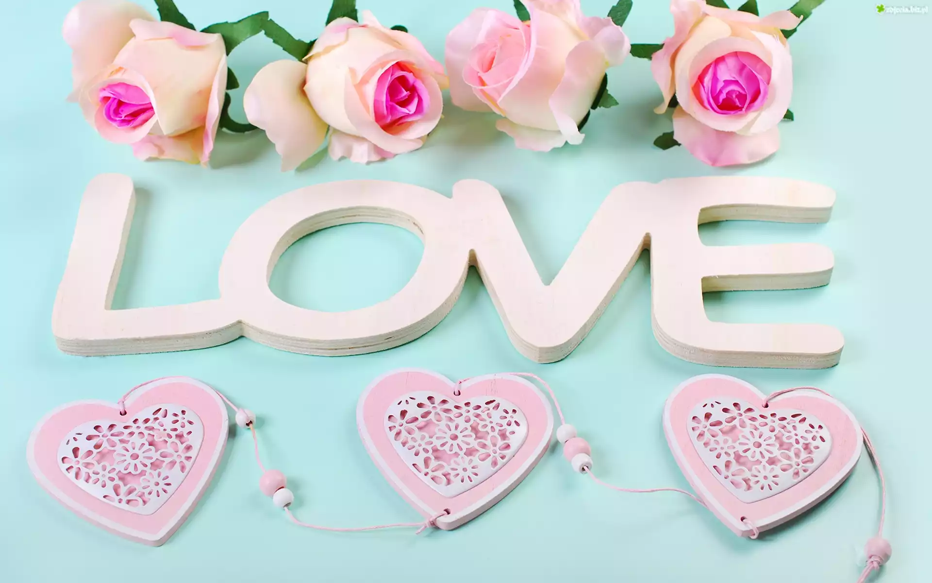 Zdjęcie Róże, Napis, Love, Miłość, Serduszka