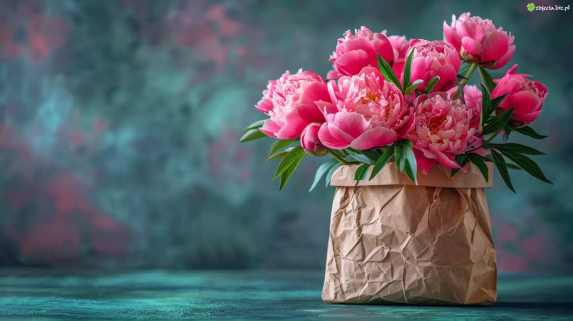 Zdjęcie Bukiet, Róże, Piwonie, Papierowa, Torba