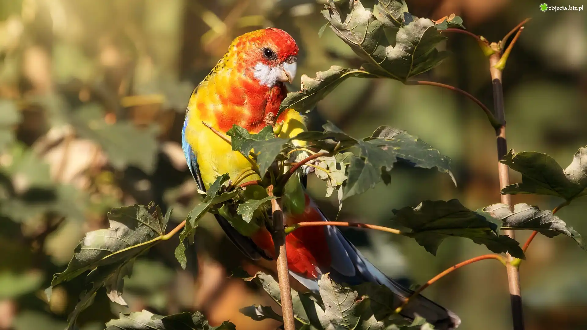 Zdjęcie, Papuga, Rozella wschodnia, Gałązki, Liście