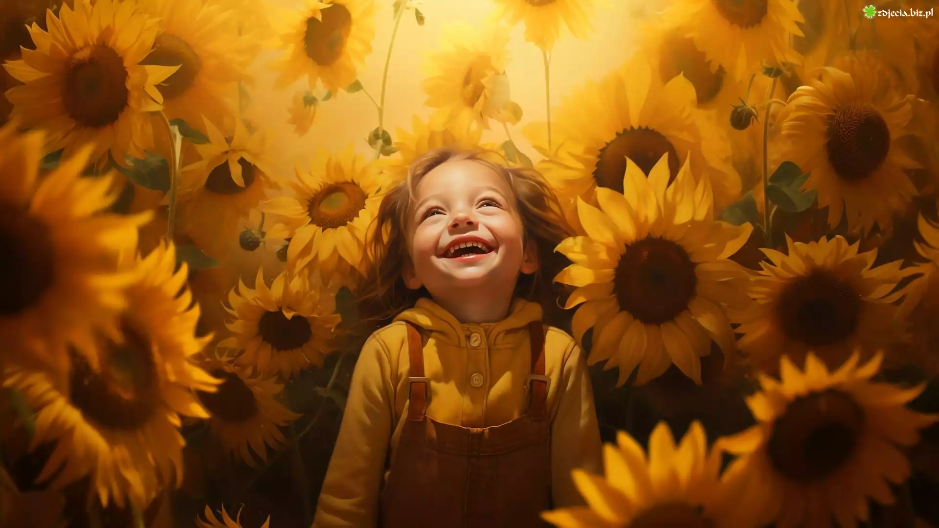 Zdjęcie Roześmiana, Dziewczynka, Słoneczniki